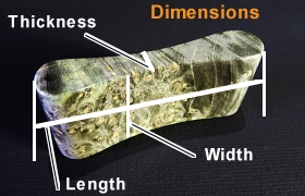 The Wood-Henge Classic is curved on both sides for easy rubbing and flipping through your fingers. This is the Wood-Henge that started it all and it comes in about 50 different exotic woods. The majority of Wood-Henges are created in this style. They range in width and thickness, but all are about 1 7/8 - 2 inches (47mm - 51mm) long. Width ranges from 3/4 to 7/8 inches (19mm - 22mm). Thickness in the middle ranges from 3/16 - 1/4 inches (4.8mm - 6.4mm). All Wood-Henges are shaped entirely by hand so each one has uniquely different dimmensions, but most fall within the measurements above. |